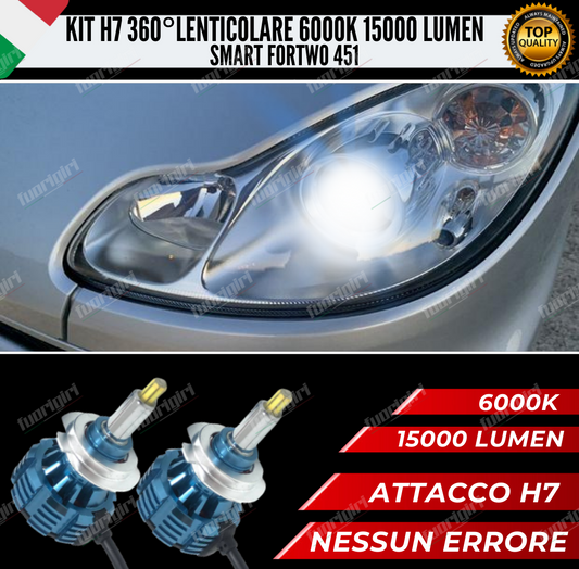 KIT FULL LED H7 360° GRADI PER LENTICOLARI SMART FORTWO 451 CANBUS 100% NO ERROR