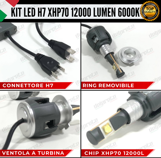 KIT FULL LED H7 XHP70 12000 LUMEN CANBUS PER FARI LENTICOLARE E PARABOLA NO ERRORE