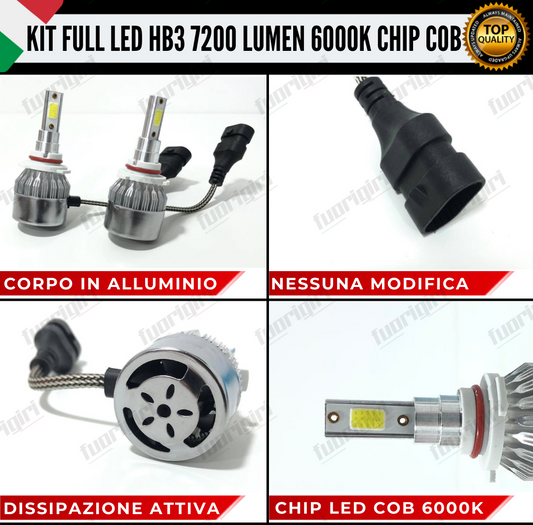 KIT FULL LED HB3 9005 CANBUS 7200 LUMEN REALI 6000K BIANCO NESSUN ERRORE AUTO
