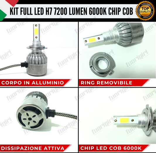 KIT FULL LED H7 CANBUS 7200 LUMEN REALI 6000K BIANCO NESSUN ERRORE AUTO