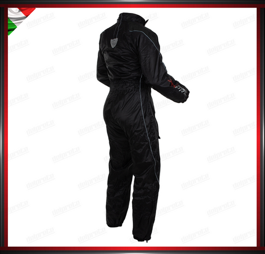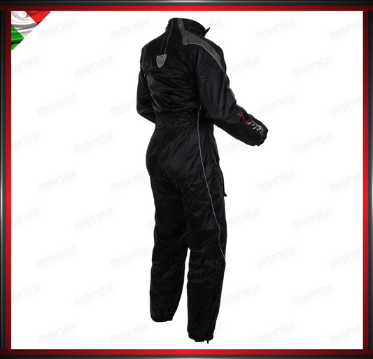 TUTA MOTO ANTIPIOGGIA INTEGRALE NERO 100% IMPEREMABILE ANTIACQUA UOMO DONNA TESSUTO CERATO