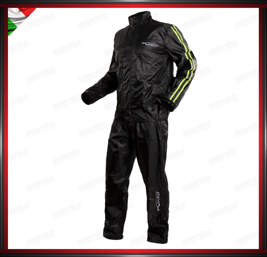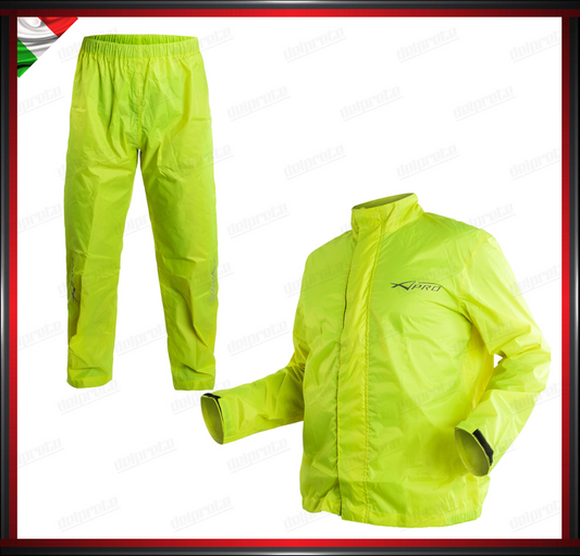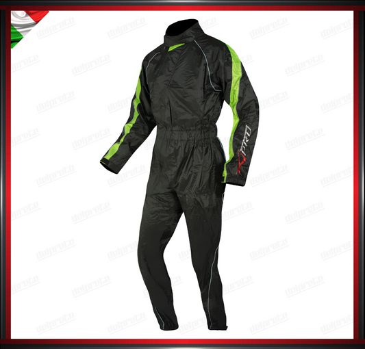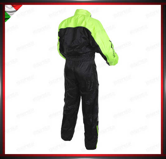 TUTA ANTIPIOGGIA MOTO INTEGRALE TESSUTO CERATO FLUO ANTIACQUA 100% IMPERMEABILE ANTIVENTO