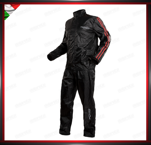 TUTA ANTIPIOGGIA COMPLETA DIVISBIBILE INSERTI ROSSO MOTO ANTIVENTO IMPERMEABILE