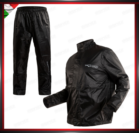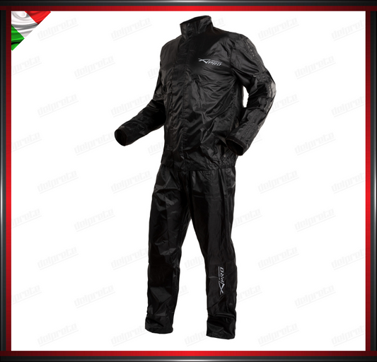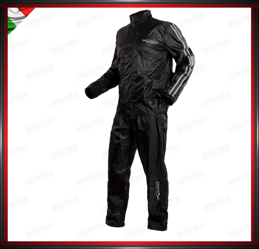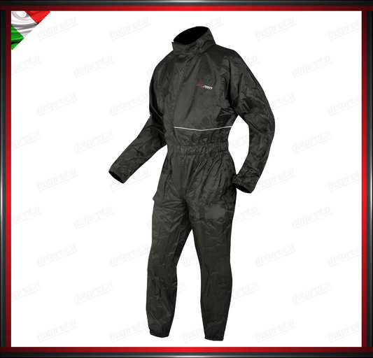 TUTA COMPLETA DIVISBIBILE ANTIPIOGGIA MOTO ANTIVENTO CERATO IMPERMEABILE NERO