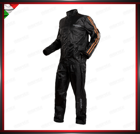TUTA ANTIPIOGGIA COMPLETA DIVISBIBILE INSERTI ARANCIONI MOTO ANTIVENTO IMPERMEABILE
