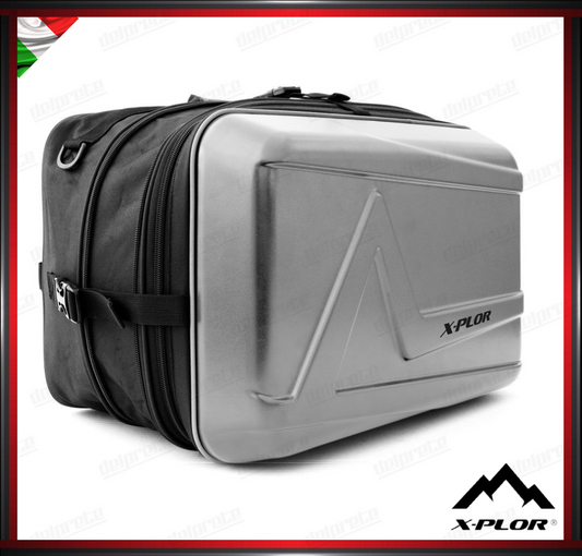 X-PLOR - COPPIA BORSE LATERALI SEMIRIGIDE 25 LITRI ESTENDIBILI - GRIGIO SILVER CAVALIER