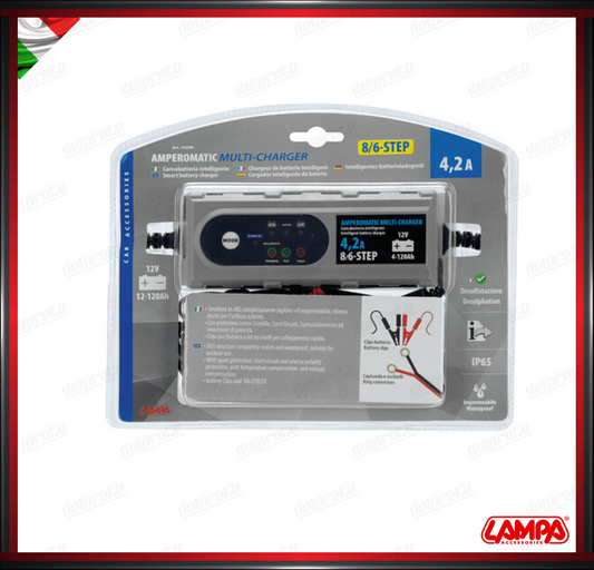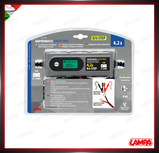 CARICATORE DIGITALE PER BATTERIE AMPEROMATIC DIGIT PRO LAMPA 12V - 4,2A CARICABATTERIE INTELLIGENTE