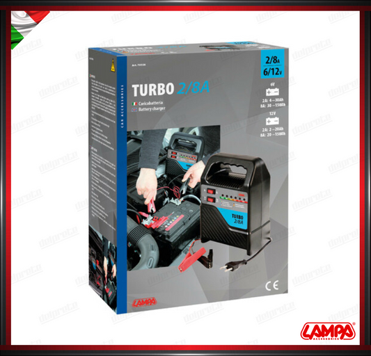 TURBO LAMPA 2/8 A CARICABATTERIA 6/12V CARICATORE BATTERIE AUTO MOTO CON MANTENIMENTO