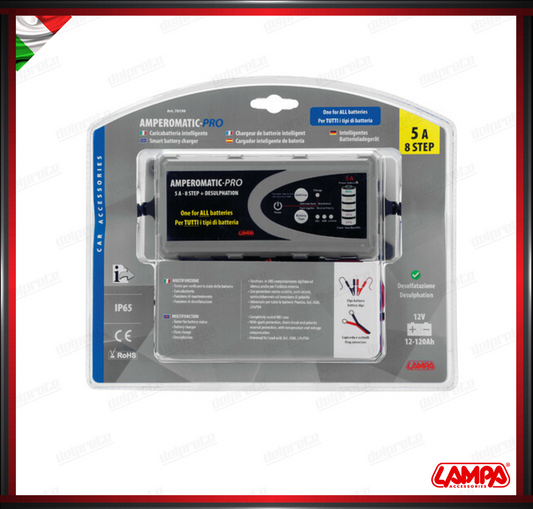 CARICATORE MANTENITORE PER BATTERIE AMPEROMATIC PRO LAMPA 12V - 5A CARICABATTERIE INTELLIGENTE