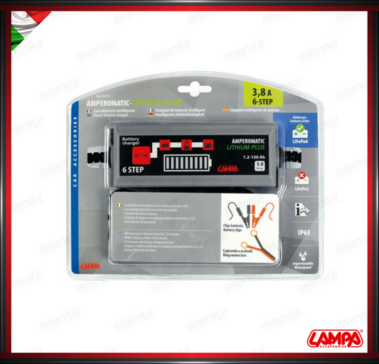 CARICATORE PER BATTERIE AMPEROMATIC LITHIUM-PLUS LAMPA 12V - 3,8 A CARICABATTERIE INTELLIGENTE