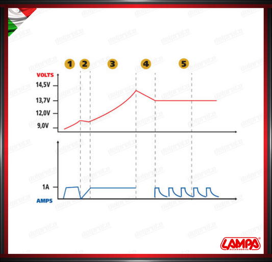 CARICATORE PER BATTERIE MULTI-CHARGER LAMPA 12V - 5A CARICABATTERIE INTELLIGENTE