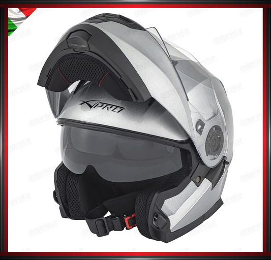 CASCO MODULARE GRIGIO ARGENTO APRIBILE MOTO CON VISIERA PARASOLE OMOLOGATO ECE 22-05