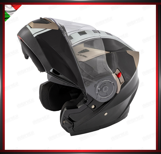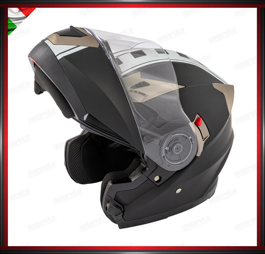 CASCO MODULARE DOPPIA VISIERA APRIBILE NERO OPACO CON GRAFICA OMOLOGATO ECE2205