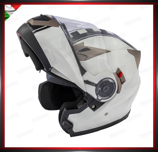 CASCO MODULARE MOTO DOPPIA VISIERA INTERNA PARASOLE BIANCO OMOLOGATO ECE 22-05