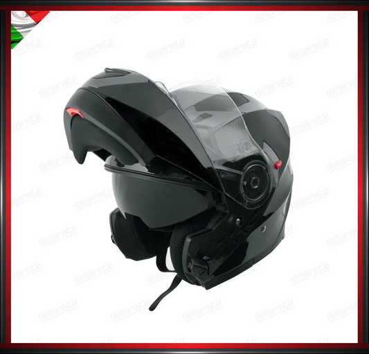 CASCO MODULARE MOTO DOPPIA VISIERA INTERNA PARASOLE NERO LUCIDO OMOLOGATO ECE 22-05