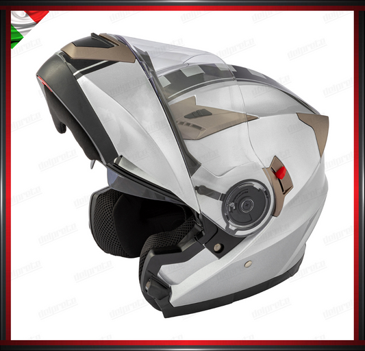 CASCO MODULARE DOPPIA VISIERA APRIBILE GRIGIO ARGENTO CON GRAFICA OMOLOGATO ECE2205