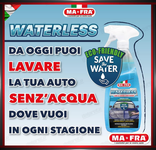MAFRA - WATERLESS LAVA E LUCIDA SENZ'ACQUA LAVAGGIO A SECCO COMPLETO CARROZZERIA VETRI 750ML