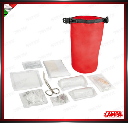 KIT PRONTO SOCCORSO PORTATILE SACCA IMPERMEABILE PER MOTOCICLISTI E CICLISTI PRIMO SOCCORSO - LAMPA