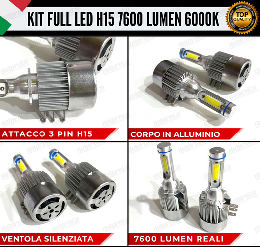 KIT LED H15 CANBUS LUCI DIURNE DRL + ABBAGLIANTI 7600 LUMEN CANBUS NO SPIA