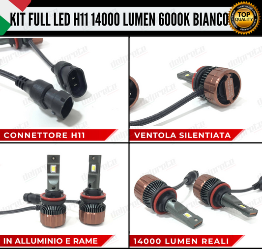 KIT LED FULL H11 6000K BIANCO 14000 LUMEN REALI CANBUS LED 100% NO ERRORE ALLUMINIO AVIAZIONE