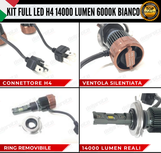 KIT LED FULL H4 6000K BIANCO14000 LUMEN REALI CANBUS LED 100% NO ERRORE ALLUMINIO AVIAZIONE