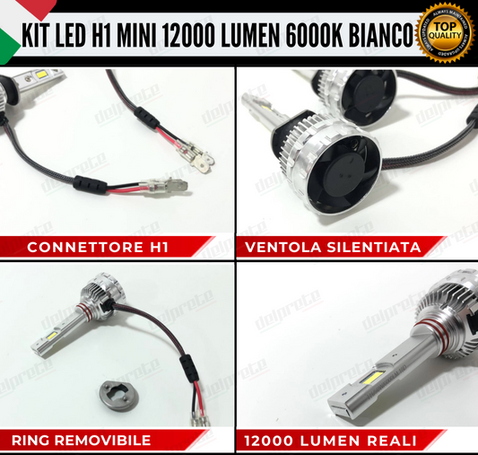 KIT FULL LED LAMPADE LED H1 MINI NO ERROR 6000K BIANCO 10000 LUMEN LM CANBUS