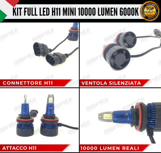 KIT FULL LED LAMPADE LED H11 MINI NO ERROR 6000K BIANCO 10000 LUMEN LM CANBUS