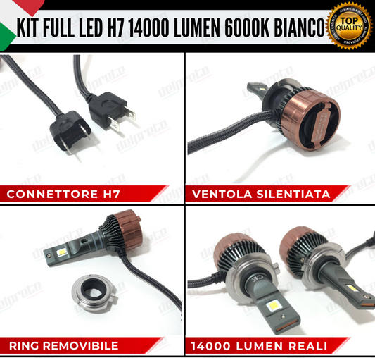 KIT FULL LED H7 CANBUS 7200 LUMEN REALI 6000K BIANCO NESSUN ERRORE AUTO