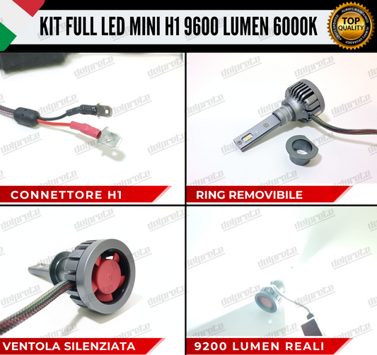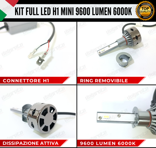 KIT LED H1 MINI FULL LED 6000K XENON CANBUS 9600 LUMEN REALI NO ERROR AUTO MOTO