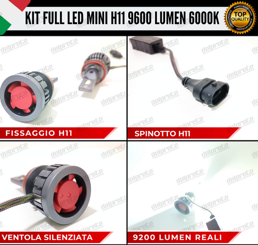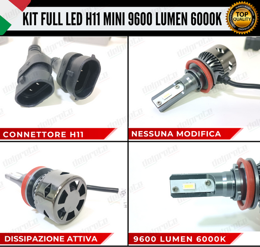 KIT LED H11 CANBUS 9600 LUMEN REALI 55W MINI SLIM PLUG AND PLAY 100% NO ERRORE
