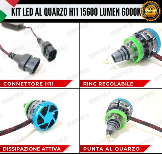 KIT LED H11 AL QUARZO MONO LED 360° PER FARI LENTICOLARI 15600 LUMEN 6000K CANBUS