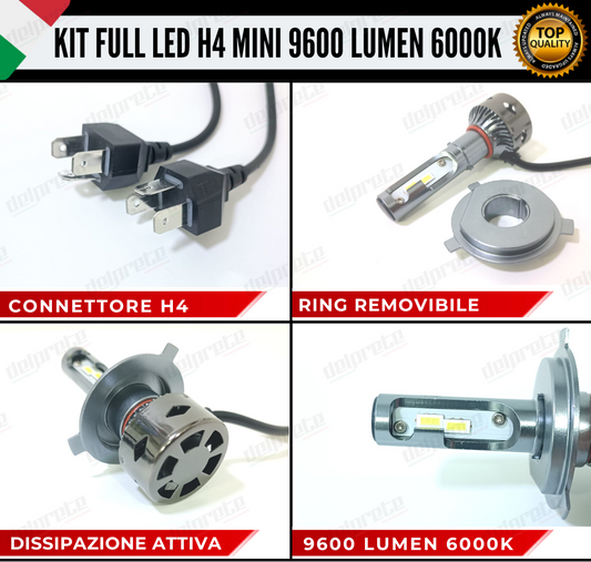 KIT LED H4 MINI FULL LED 6000K XENON CANBUS 9600 LUMEN REALI NO ERROR AUTO MOTO