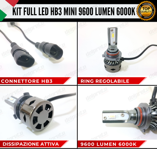 KIT LED HB3 MINI FULL LED 6000K XENON CANBUS 9600 LUMEN REALI NO ERROR AUTO MOTO