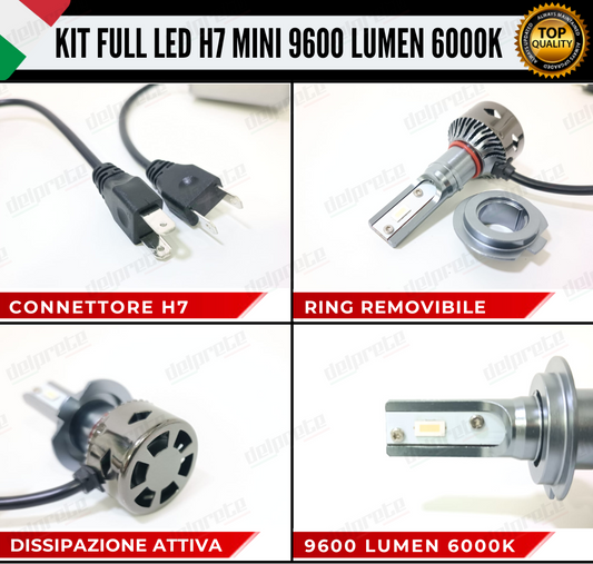 KIT LED H7 MINI FULL LED 6000K XENON CANBUS 9600 LUMEN REALI NO ERROR AUTO MOTO