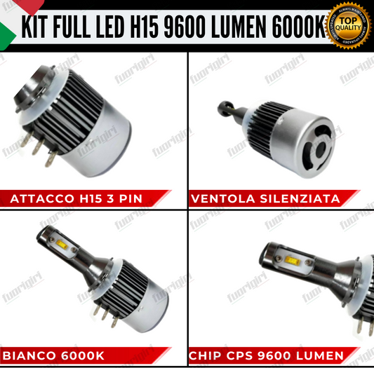 KIT LED H15 MINI FULL LED 6000K XENON CANBUS 9600 LUMEN REALI NO ERROR AUTO MOTO