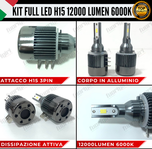 KIT LED H15 CANBUS LUCI DIURNE DRL + ABBAGLIANTI 12000 LUMEN CANBUS NO SPIA