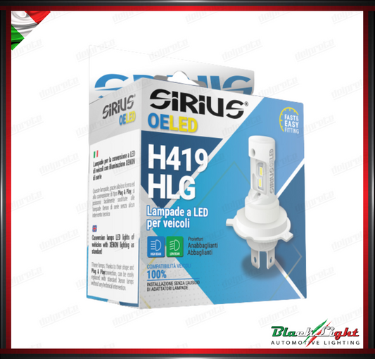 KIT LED H4 H19 2 LAMPADE SIRIUS 12V 6000K 7200 LUMEN - BLACKLIGHT SERIE OELED XL H419 HLG