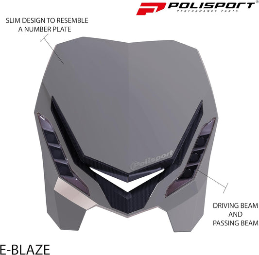 POLISPORT - FARO E-BLAZE LED MASCHERINA IN CARBONIO CROSS ENDURO GRIGIO NARDO