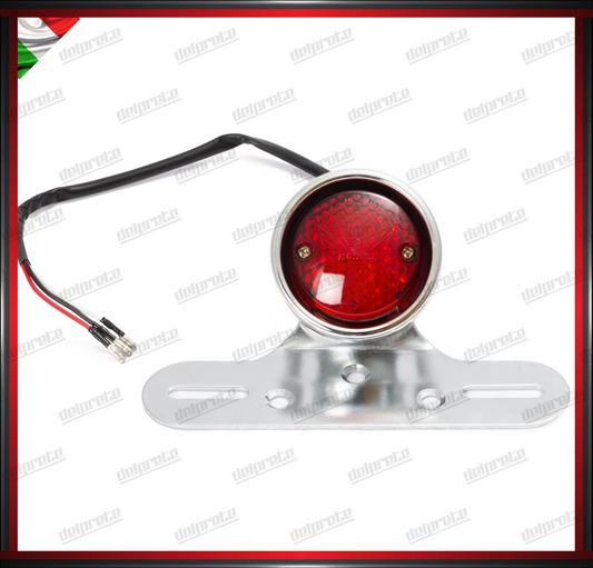 FANALE STOP MOTO CAFE RACER CUSTOM TONDO OMOLOGATO LED CON PORTATARGA LUCE TARGA