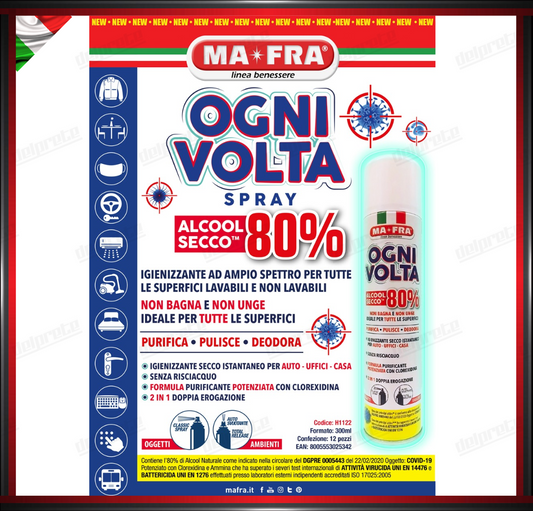 MAFRA - OGNI VOLTA SPRAY IGIENIZZANTE ALCOL SECCO PURIFICA PULISCE DEODORA 300ML