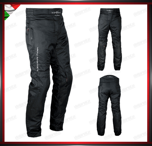 PANTALONI MOTO NERO DONNA IN TESSUTO CORDURA IMPERMEABILE SFODERABILE PROTEZIONI CE