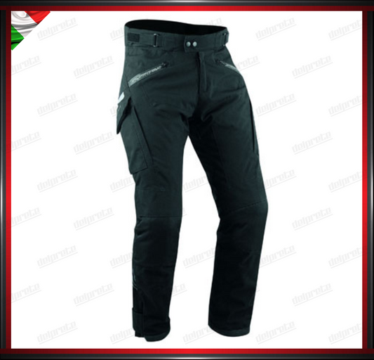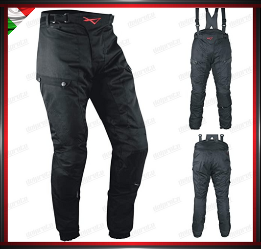 PANTALONI MOTO NERO IN TESSUTO ULTRA RESISTENTE NYLON TECNICO 3 STRATI IMPERMEABILE TERMICO