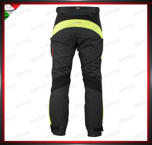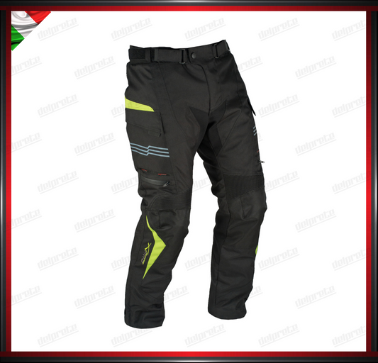 PANTALONI MOTO FLUO IN TESSUTO CORDURA IMPERMEABILI TERMICA ESTRAIBILE PROTEZIONI OMOLOGATE CE