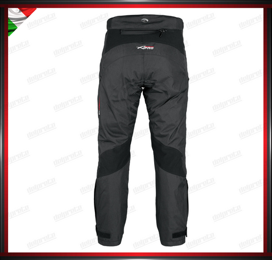 PANTALONI MOTO IN TESSUTO NERO IMPERMEABILI CON TERMICA ESTRAIBILE PROTEZIONI CE