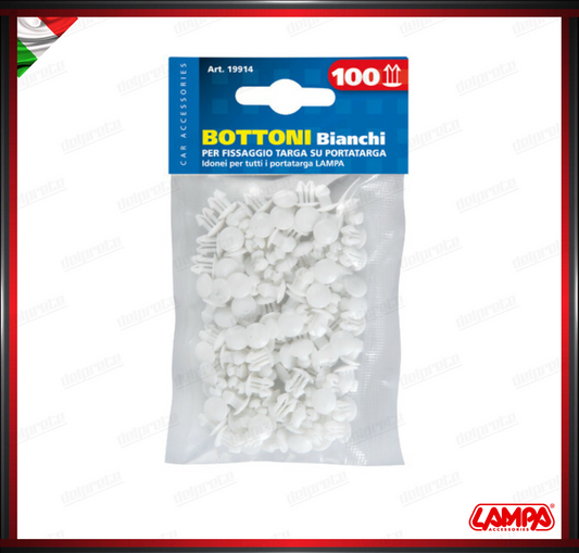 SET 100 BOTTONI PER TARGA BIANCO UNIVERSALI RIVETTI TARGA IN PLASTICA LAMPA