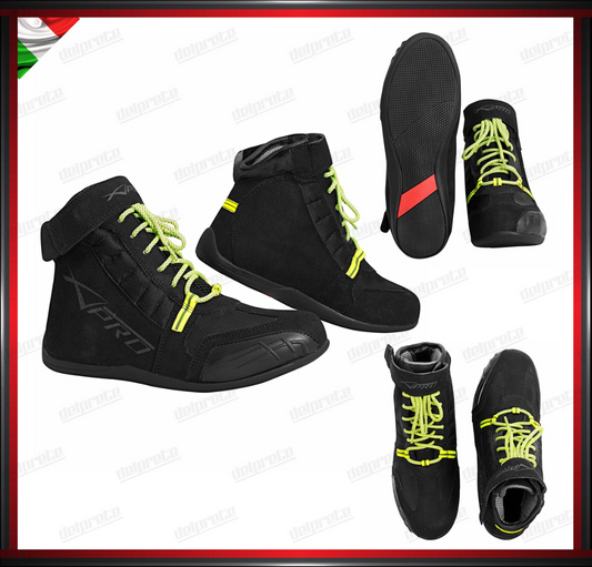 STIVALETTO BASSO MOTO IN TESSUTO CON LACCI FLUO IMPERMEABILE TRASPIRANTE OMOLOGATO CE