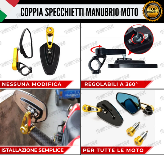 SPECCHIETTI RETROVISORI MANUBRIO COPPIA PER MOTO SCOOTER BAR END ORO CAFE RACER