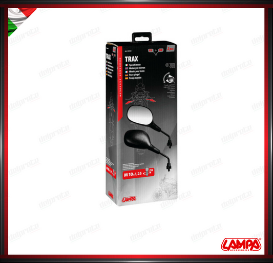TRAX COPPIA SPECCHIETTI RETROVISORI MOTO SCOOTER UNIVERSALI LAMPA OMOLOGATI NERO M 10
