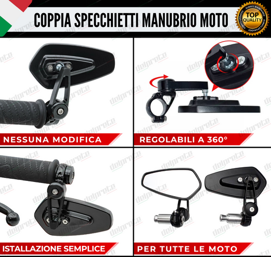 DIKE SPECCHIETTI RETROVISORI MOTO SCOOTER LAMPA OMOLOGATI MANUBRIO M10