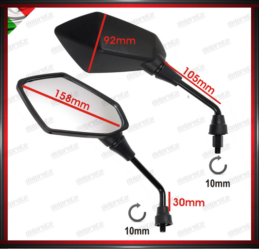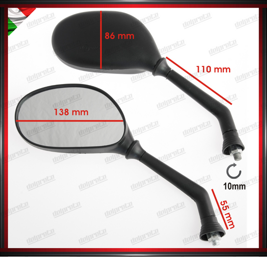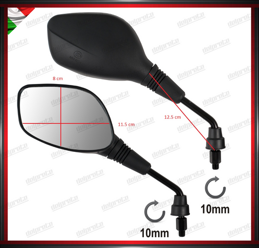 SPECCHIETTI MOTO SCOOTER NAKED CUSTOM PER MANUBRIO NERO M10 REGOLABILI DX + SX